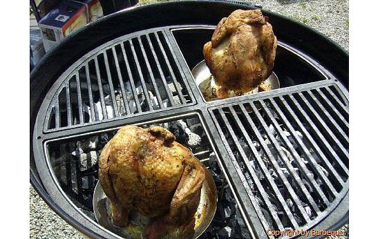 Now Beer Can Chicken on your Weber Grill! Until now, the lid for your Weber kettle grill would not offer enough room to make a beer can chicken. Because of our support frame we can now drop your chicken a few inches which gives enough room for up to 4 beer can chicken on one grill!